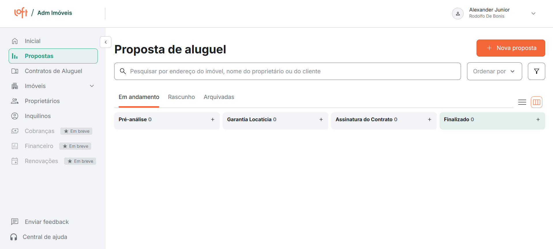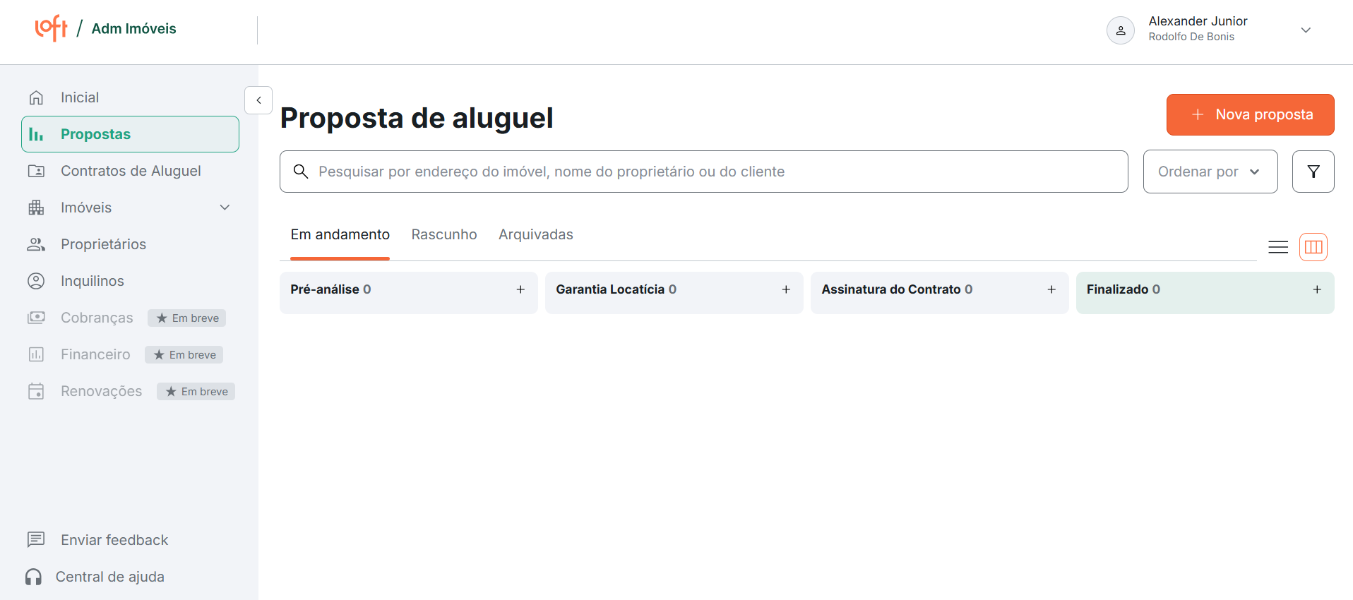 • Ao clicar nesta opção você será direcionado para o módulo da Proposta Digital da Loft