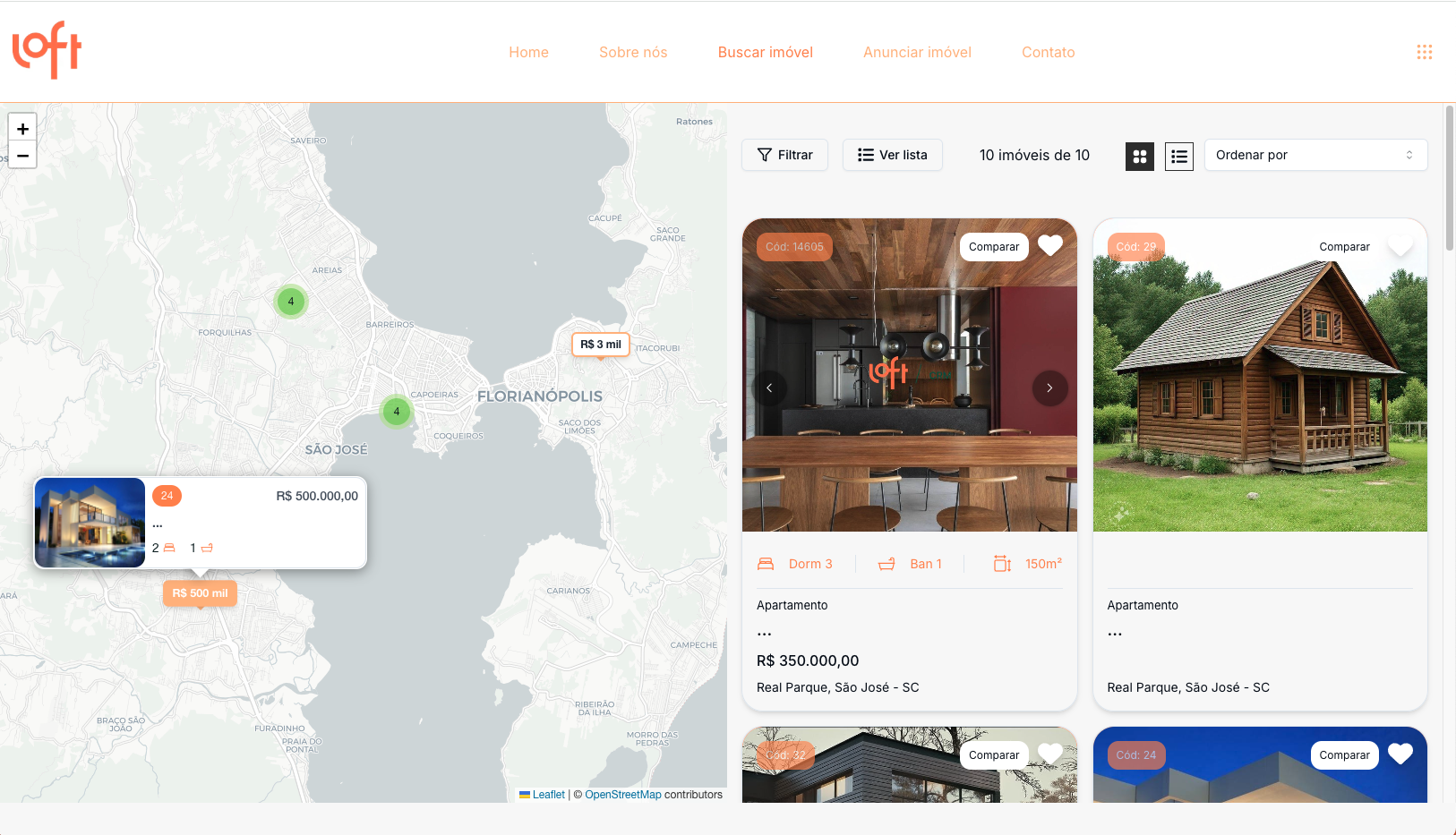 • Permite exibir imóveis diretamente no mapa, facilitando a localização visual.