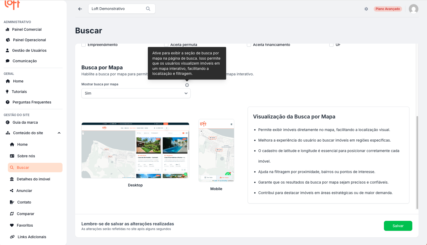 Como ativar a Busca por Mapa no Loft/ Sites?
