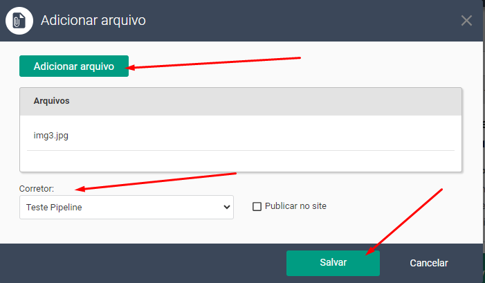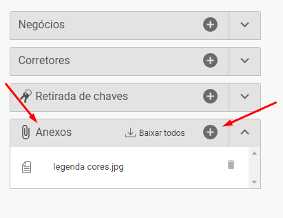 Dentro do cadastros feitos na sua base do CRM é possível anexar arquivos nos formatos (.pdf, .png, .jpg, .doc, .txt e .xls), sendo dentro de clientes ou imóveis.