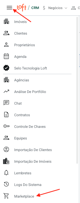 2. Após isso, deve ser ativado a Integração de Leads através do Marketplace em MENU > MARKETPLACE: