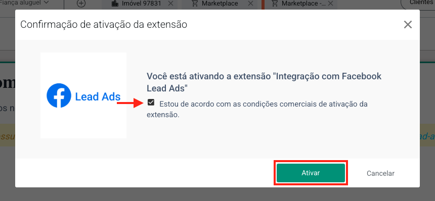 4. Para concluir a ativação, clique no checkbox e em seguida em ativar:
