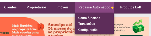 Entre no menu Repasse Automático e ative a feature em “Configuração”: